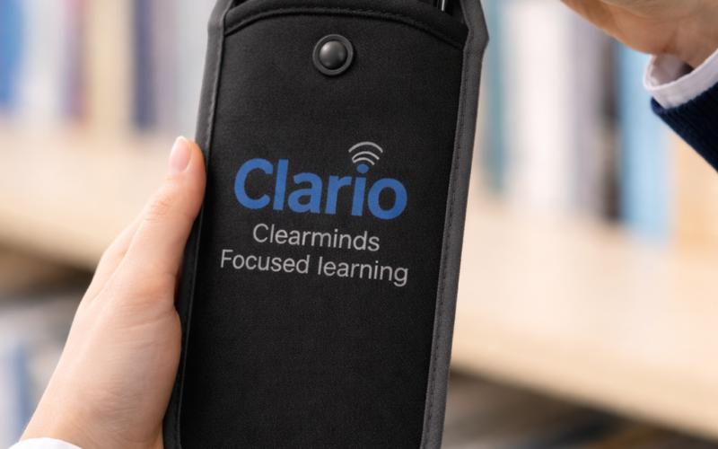 Each Clario pouch contains a layer of conductive material that creates a Faraday cage around the phone. This blocks all electromagnetic signals — including WiFi, cellular data, and Bluetooth — ensuring the phone cannot send or receive any communications while secured.